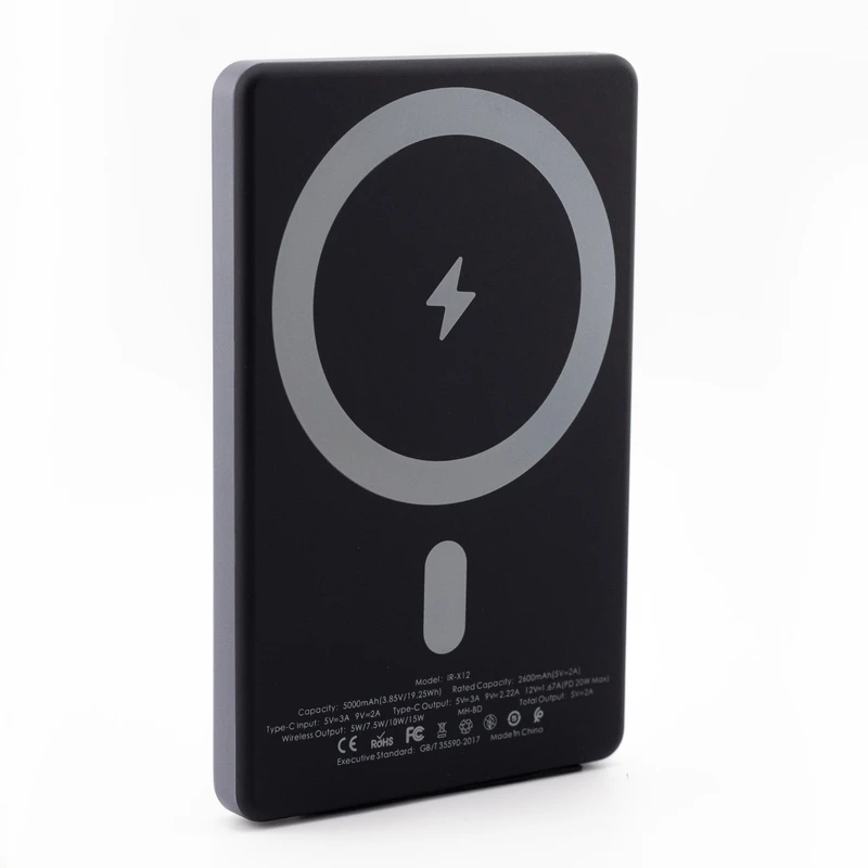 پاوربانک آیرنج طرح مگ سیف مدل IR- X12 ظرفیت 5000 میلیآمپرساعتپاوربانک آیرنج مدل IR – X12 با ظرفیت 5000 میلی آمپر ساعت با قابلیت شارژ سریع دو دستگاه میباشد: دارای یک درگاه Type-C دوطرفه و مجهز به پد وایرلس با فناوری Qi، طراحی بصورت مگنتی، دارای پنل وایرلس با خاصیت مغناطیسی جهت چسبیدن به گوشیهایی که فلزی هستند،مجهز به فناوری شارژ سریع PD با حداکثر توان خروجی 20 وات و شارژ گوشیهای دارای فناوری شارژ بی سیم Qi با حداکثر توان خروجی 15 وات، مجهز به تراشه هوشمند داخلی جهت یکسان سازی شدت جریان خروجی متناسب با نوع جریان دستگاه در حال شارژ (شارژ ایمن و بدون آسیب رساندن به دستگاه)، بهرهمندی از تکنولوژی NTC با قابلیت Trickle، در این فناوری، سنسورهای مختلفی استفاده شده که میتواند دما و حرارت دستگاه را بسنجد و سپس با توجه به آن میزان شارژدهی را کنترل کند؛ اگر در حالت فست شارژ سنسورها دمایی غیر طبیعی را تشخیص دهند؛ حالت Trickle فعال میشود که در آن شدت جریان و سرعت کنترل شده تا دما به تدریج متناسب شود و کاهش یابد. برخورداری از کیفیت ساخت عالی، ساخته شده از ترکیب ABS+PC با روکش سیلیکونی جهت جلوگیری از لغزش یا سُر خوردن گوشی، ابعاد 8×65×100 میلیمتر با وزن تنها 125گرم می باشد این ابعاد کوچک سبب شده تا بتوانید براحتی این پاوربانک را حمل کنید. و همینطور دارای چراغ LED برای نمایش میزان شارژ است.دارای ورودی تایپ سی : 5V⎓3A | 9V⎓2A و خروجی تایپ سی: 5V⎓3A | 9V⎓2.22A | 12V⎓1.67A و خروجی وایرالس : ماکزیمم 15W می باشد.