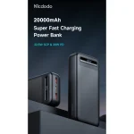 پاوربانک مک دودو 22.5W مدل MC-389 ظرفیت 20000 میلی آمپر ساعتپاوربانک مک دودو 22.5W مدل MC-389 ظرفیت 20000 میلی آمپر ساعت با توان 22.5 وات دارای قابلیت فست شارژ آیفون و اندرویدی است و امکان شارژ 3 دستگاه همزمان را دارد.دارای 3 خروجی که 2 پورت USB و یک پورت تایپ سی که هم امکان شارژ خود پاوربانک را دارد و هم شارژ موبایل و تبلت.این پاوربانک از پروتکل های شارژ سریع PD/QC/SCP/FCP/AFC/VOOC/Apple را دارد و با انواع برندها سازگار است.زمان شارژ این پاوربانک با شارژر 25/33W تایپ سی PD و کابل تایپ سی توان بالا حدود 5.5 ساعت خواهد بود.طراحی بسیار شیک و مینیمال و لاکچری از ویژگی های این پاوربانک است.انتقال حرارت بسیار عالی و عدم تجمع حرارت نیز از خصوصیات MC-389 است.این پاوربانک با رنگهای سفید،سرمه ای و مشکی عرضه شده که با کدهای MC-3890/MC-3891/MC-3892 تفکیک می گردند.پاوربانک داراي تراشهای هوشمندی است که با 9 قابلیت محافظتی ، محافظت کامل از دستگاه در برابر اتصال کوتاه ، نوسانات آمپر و ولتاژ و نوسان حرارت بعهده داشته و میزان جریان و ولتاژ لازم برای هر دستگاه را بصورت اتومات و سريع تشخيص میدهد.دارای صفحه دیجیتال نشانگر درصد شارژ پاوربانک است.
